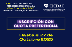 Cuotas de Inscripción 1) Realizar depósito en BBVA Bancomer: Cuenta: 0118771146 Clabe 012180001187711462Centro de Investigación Clínica de Aterosclerosis Coronaria. 2) Enviar comprobante del depósito al mailcontacto@cicdac.com.mx 3) Realizar el Pre-Registro para la generación de la constancia de participación que se entregará al final del curso.